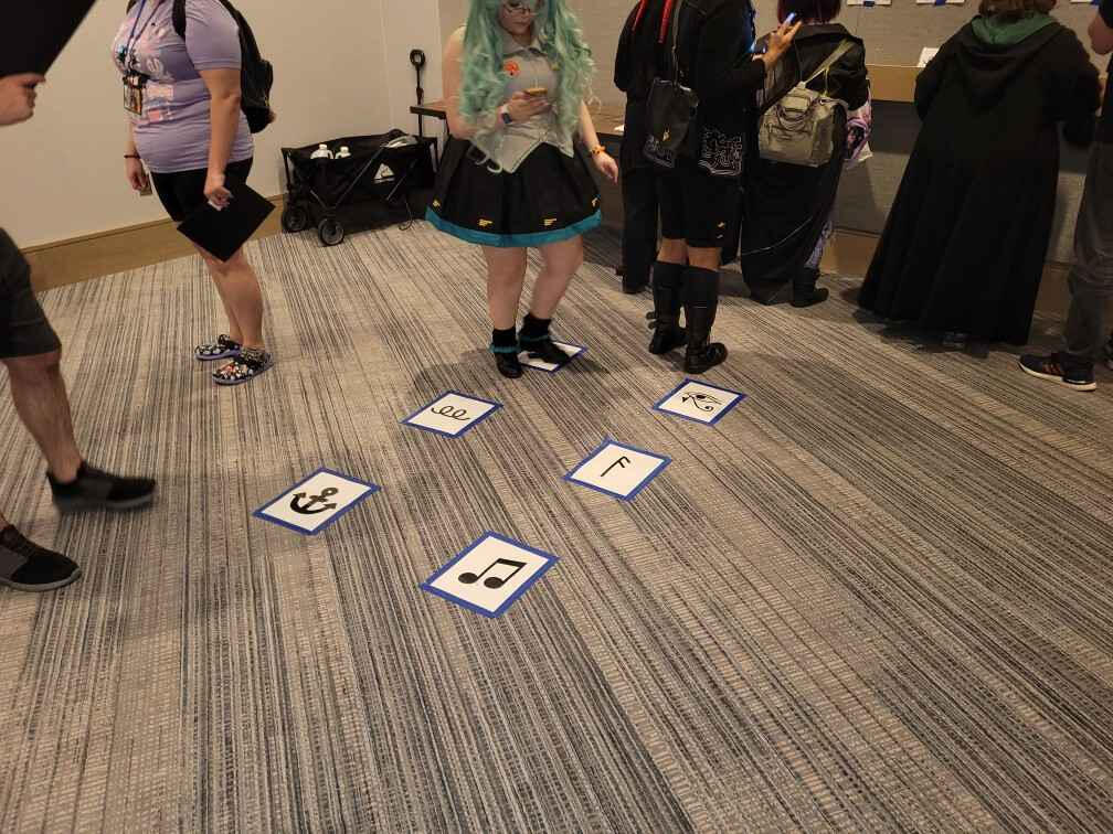 Zane Dase and I designed several escape rooms between 2022-2024 for AnimeFest.We designed everything together, including making custom graphics and puzzles for the room. These were self-contained and built from scratch digitally.We then worked out and designed physical parts of the puzzles and environments, which the Head of Streaming as propsmith, worked to bring to life our ideas and integrate the space with extra decoration to ensure everything was more visually interesting.Each room had it's own theme and new puzzles, and were hugely successful. 4-5 sessions were run each convention and were always sold out to max capacity with approximately 200 participants each year.