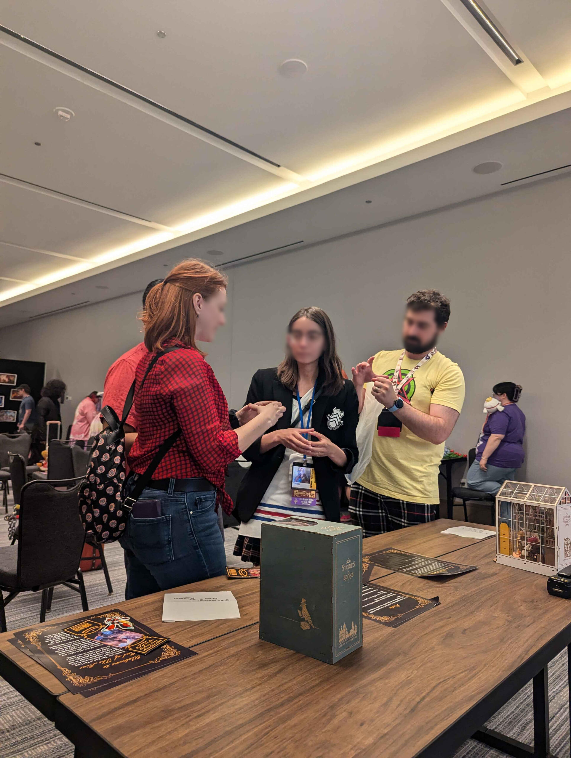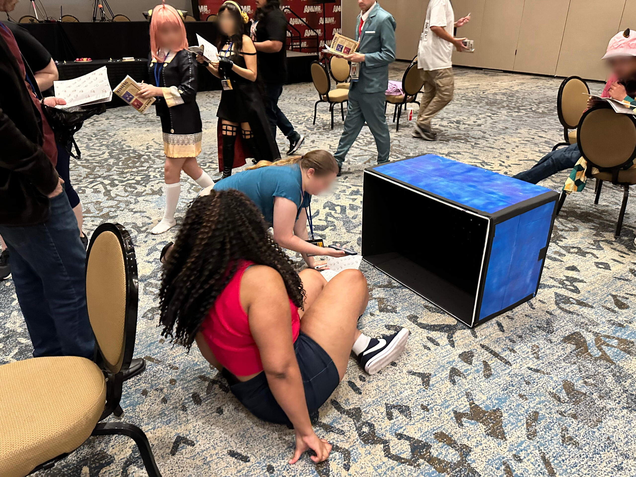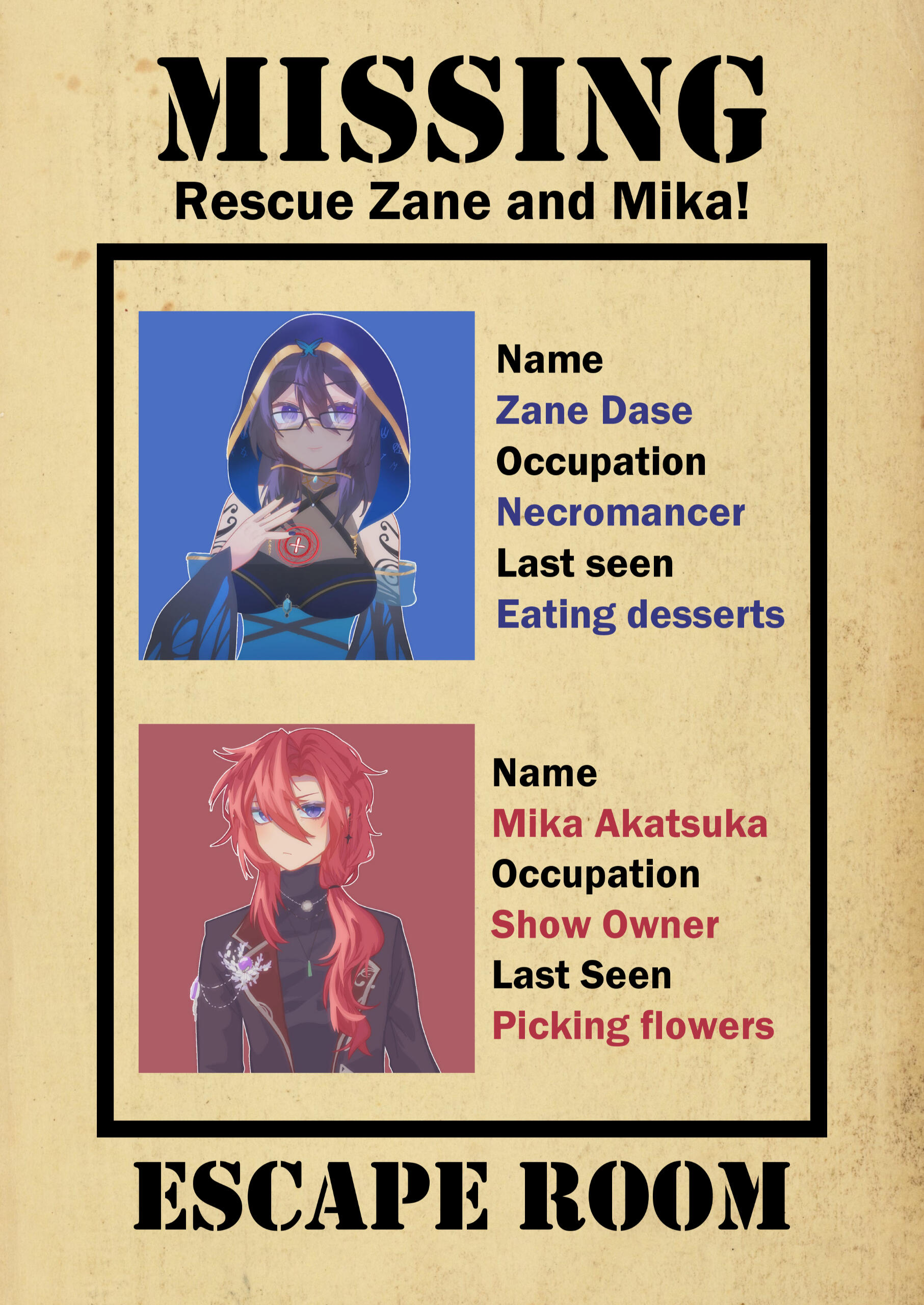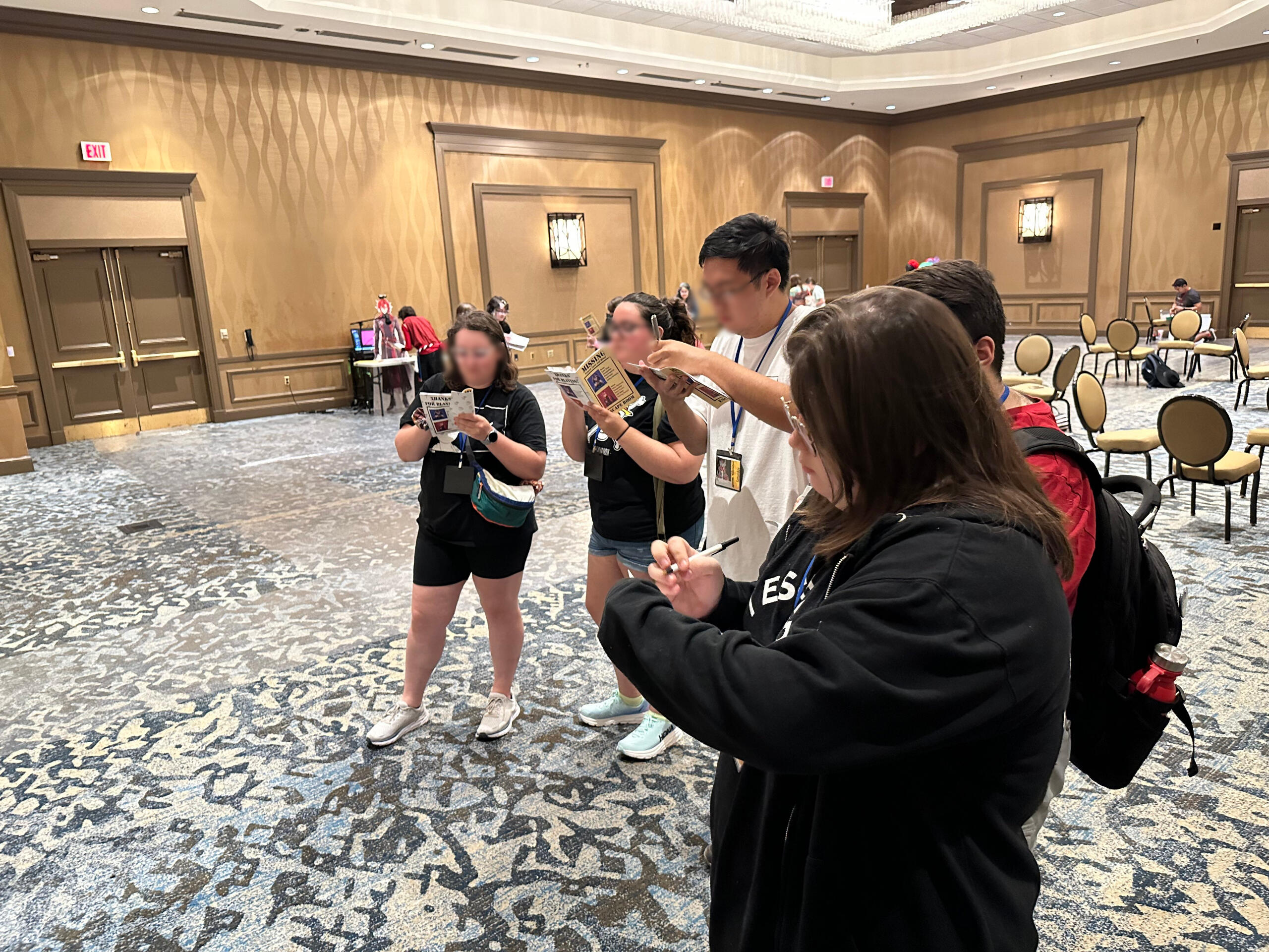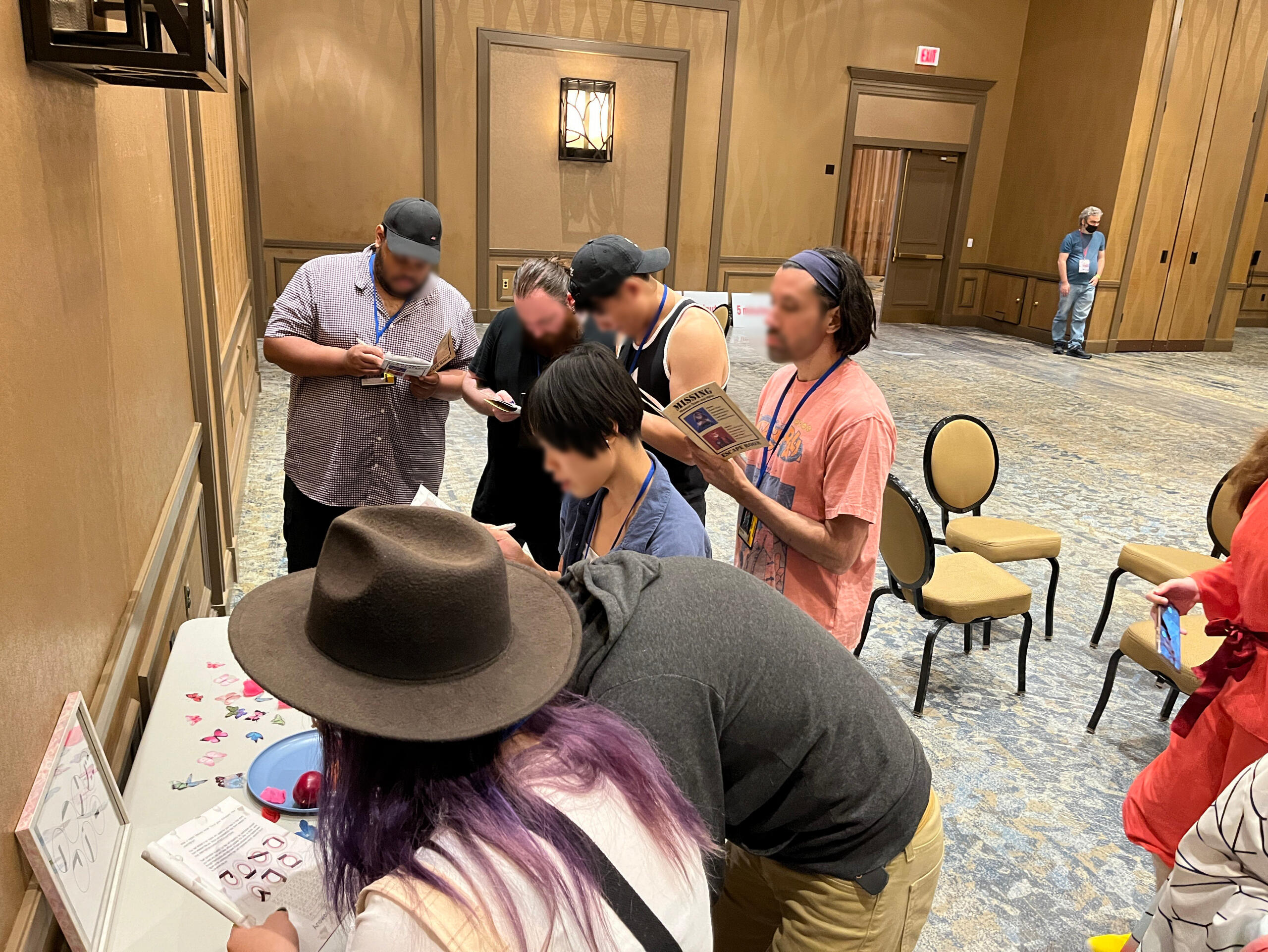 This was the first year we were able to try this concept, originally from an idea pitched in 2021. It consisted of mostly paper-based puzzle solving from a booklet.There was two "routes" themed the attendees being captured by each VTuber. Zane's puzzles were literature related, and mine were stage magician related (previous theme before rebrand).