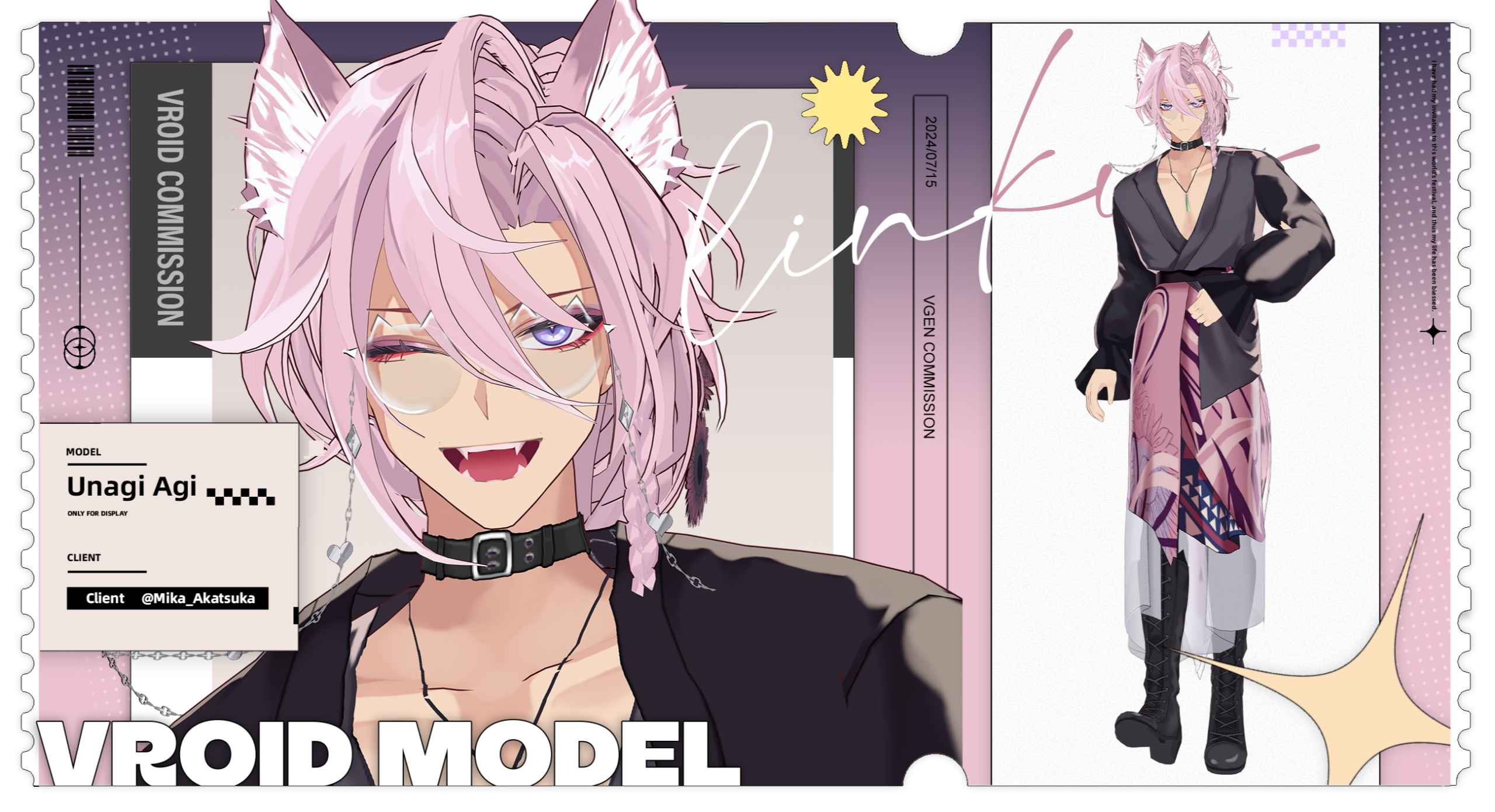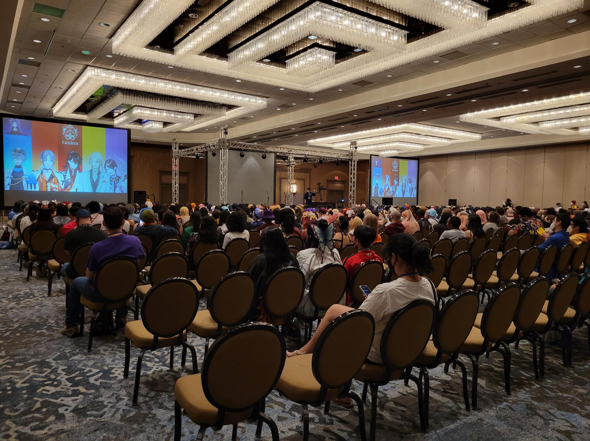In 2022, I was asked by the convention to be the emcee for LUXIEM's first ever convention panel. This was my first time emceeing and was with my previous model design/brand.I also created the background design used for the panel.