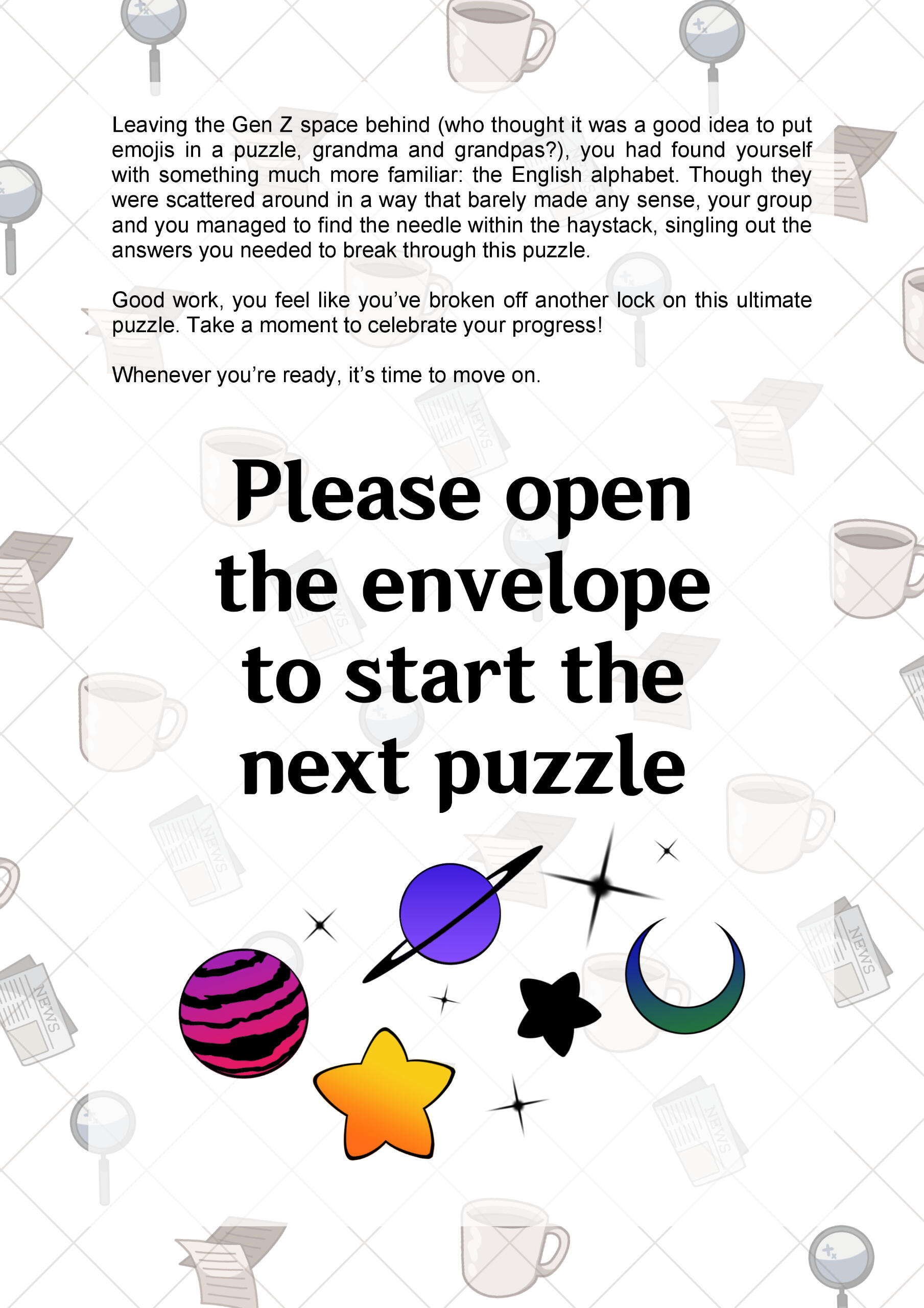 Everyone who participated in the escape room received a double-sided postcard with "win" and "fail" illustrations that they could take home alongside their booklets.