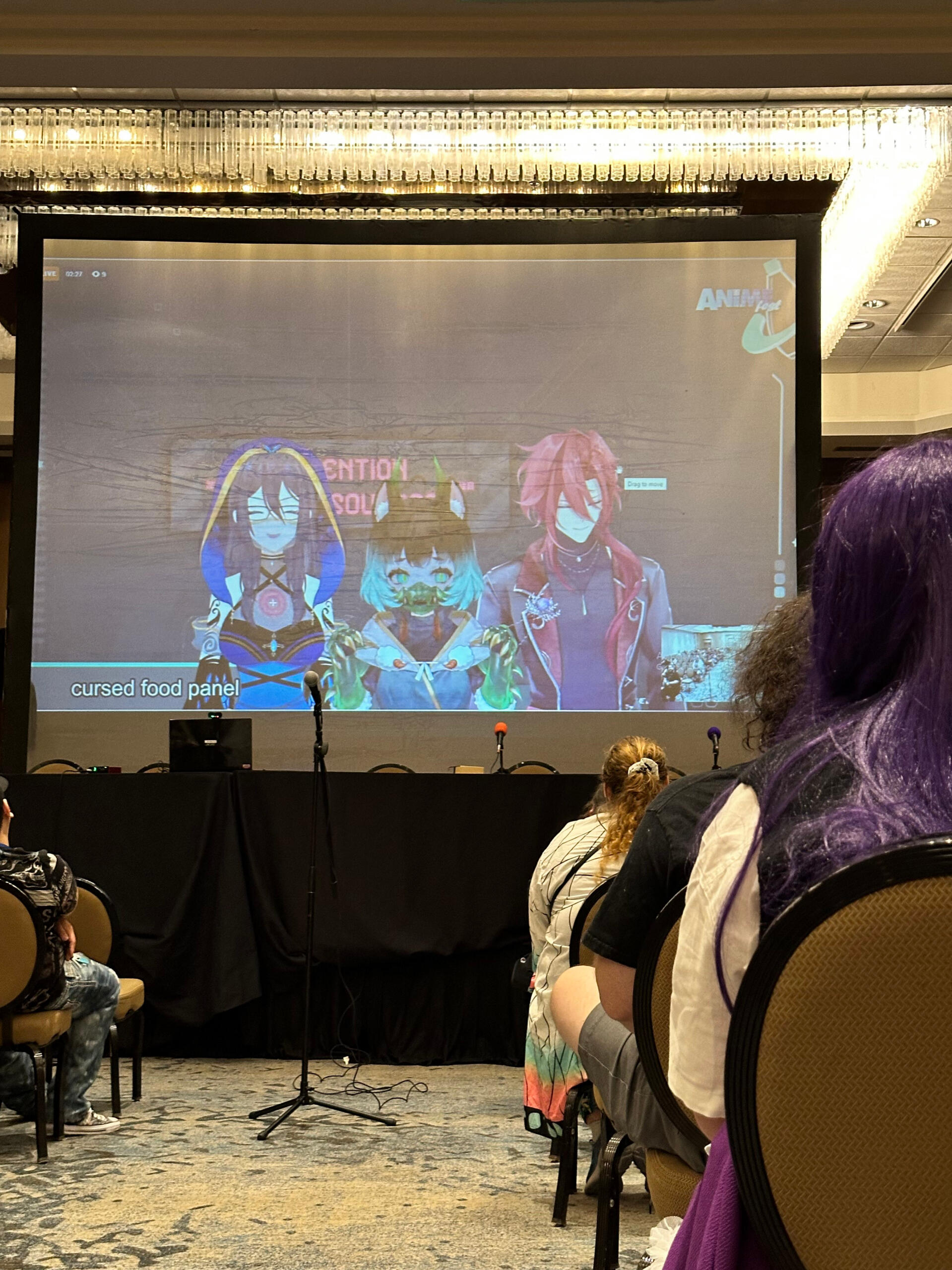 Between 2021 and 2024, I was a guest at AnimeFest, an anime convention held in Texas, USA.Originally, I volunteered to help during their online telethon in early 2021 and did a panel on VTubers. The convention was impressed with my presentation and invited me as a paid guest for the full convention in December that same year. I was invited back subsequent years, even attending in person (paid for by the convention) for AnimeFest 2023.Each year, I would create 7-9 panels to engage with convention attendees. Some panels were related to VTubing directly, such as technical demos of hardware and software to educate on what goes intobeing a VTuber. Other panels were focused on other conversation topics such as respect in VTubing and content creation, or gameshows with fun themes such as pitting VTubers against the audience to see who had better anime and games knowledge.